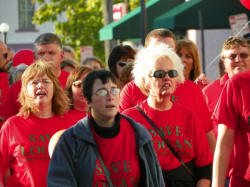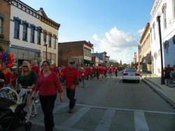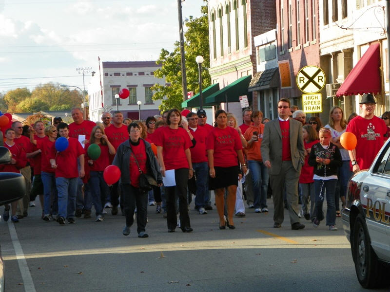 The crowd marched from the chamber of commerce offices on Fifth Street to the