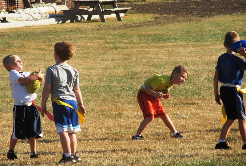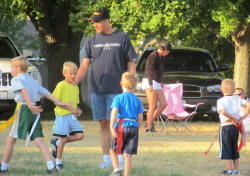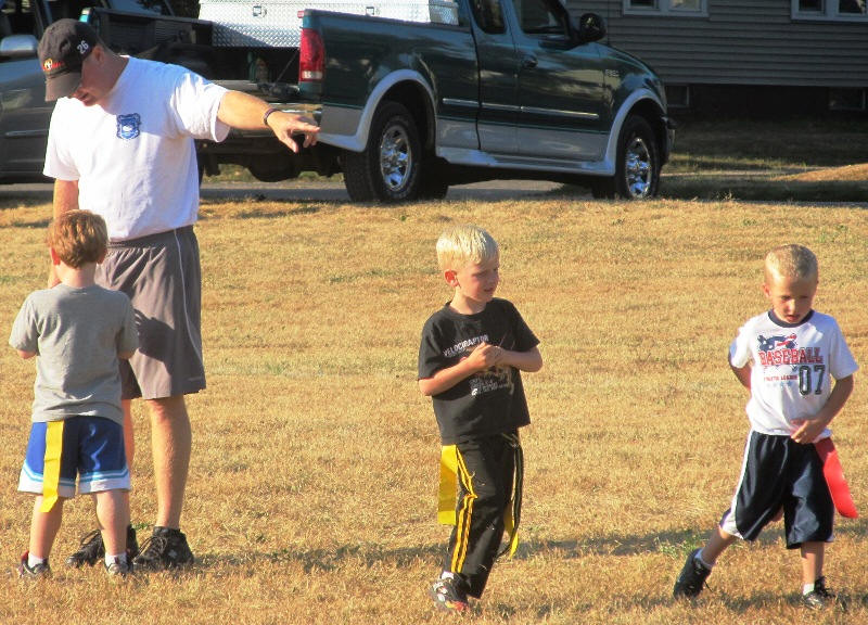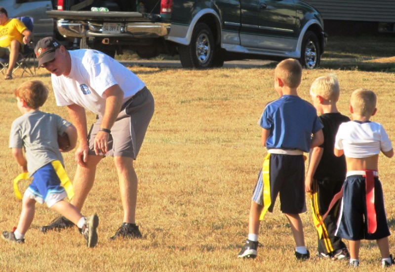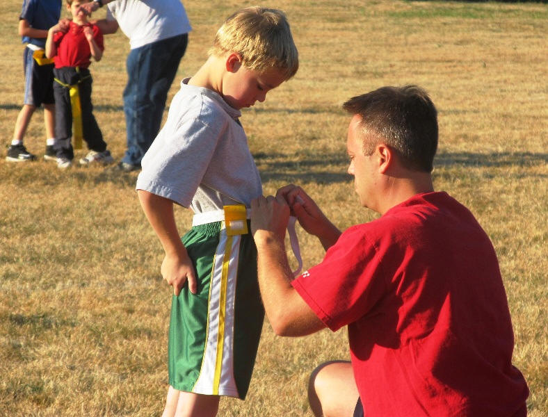 Terry Bent and Mike Starasta are coaches for flag football. Ron