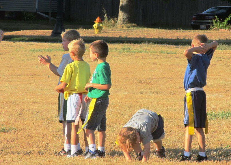 the Y, helped a player fasten a strap holding the flags. Cicci does not coach, but
