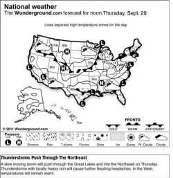 [September 29, 2011]  (AP)  Another round of rainy weather is anticipated in the lower Great Lakes, Northeast and the Mid-Atlantic on Thursday as the lingering low in the Ohio Valley finally lifts northeastward.