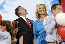 -- and Romney, her church pastor at the time, would come to the hospital and pray for the little girl. "Like a lot of families in a new place with no family, we found kinship with a wide circle of friends through our church," said Romney. "We prayed together, our kids played together and we always stood ready to help each other out in different ways." Before Romney spoke, a parade of speakers from his past took the podium to walk through different phases of his life: his time running the private equity firm Bain Capital, his years running the 2002 Winter Olympics in Salt Lake City and his experiences as governor of Massachusetts. Referred to inside the campaign as "character witnesses," the speeches were designed to showcase the man who friends say inspires fierce loyalty. Much of the list was drawn up by Romney's son Tagg. Addressing the crowd were Bob White, a longtime friend and colleague from Bain Capital, and Tom Stemberg, the founder of Staples, the office supply store; Olympic speed skater Derek Parra and hockey player Mike Eruzione; and former Massachusetts Lt. Gov. Kerry Healey, who is still a closer adviser. To prepare for the big night, Romney spent months making meticulous notes about his experiences campaigning. He read numerous previous convention speeches and talked to a number of close friends and confidants about how to approach his address. He and his wife, Ann, spent part of last weekend rehearsing their speeches in an auditorium at Brewster Academy in Wolfeboro, N.H., near the family's lakeside summer home. As he practiced, Romney staffers were working 16-hour days in a hotel suite in Tampa to cut a video showcasing their candidate. It included several old home videos of Mitt and Ann Romney at home with their children