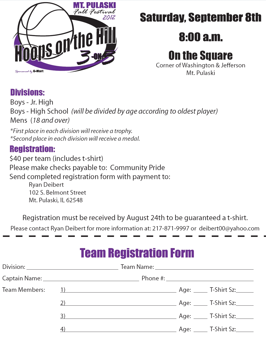 The event is scheduled to begin Sept. 8 at 8 a.m. Interested parties should fill out the registration form and mail it to the address provided on the form. (Form also available here.)