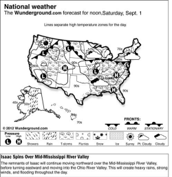 Isaac's broad storm system will produce heavy rains from eastern Oklahoma through the lower Ohio River Valley, even though it is expected to weaken as it moves farther inland. Despite the loss of energy, Isaac will continue producing strong thunderstorms, heavy rain and flooding in its path.