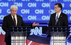 -- of "The Ron Paul Cookbook." Romney praised his wife for battling multiple sclerosis and breast cancer. "She is a real champion and a fighter," he said. Gingrich said he's met each of the candidates' wives and said they'd all be "terrific first ladies." He says his wife, Callista, would bring a tremendous artistic focus and would be a strong advocate for music and music education. Rick Santorum says his wife is "my hero" because she gave up a successful career to help raise their seven children. --- MOM IN THE HOUSE Santorum got a big applause line when he introduced his mom, 93-year-old Catherine Santorum. During the debate's introductions Santorum said he was glad to have his mother at the debate. And, it turns out, she can help turn out the vote for her son