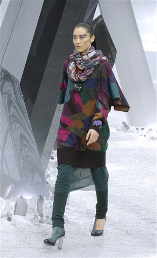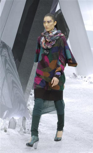 [March 08, 2012]  PARIS (AP) -- Karl Lagerfeld turned Paris' Grand Palais into a cold, crystal fortress for a wrapped-up, layered fall-winter collection that channeled the space-age sheen of the 1980s.
