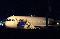 Meanwhile Russian Foreign Ministry spokesman Alexander Lukashevich said Russia was concerned that "the lives and safety of the passengers, among whom were 17 Russian citizens, had been endangered." He said Turkey without explanation denied Russian consular officials and a doctor access to the passengers, who had not been allowed into the airport for eight hours or provided with food. "The Russian side continues to insist on an explanation for the Turkish authorities' actions toward Russian citizens and on the adoption of measures to avoid such incidents in the future," Lukashevich said in a statement. The plane's 37 passengers and crew were allowed to continue to Damascus after several hours, without the cargo. Also Thursday, Turkey's Energy Minister Taner Yildiz announced that Syria had stopped buying electricity from Turkish suppliers about a week ago. "The door is open. If they request (electricity) again then we could resume providing it," Yildiz told reporters, adding that it was Syria's own decision. Yildiz said Turkish companies supply around 2.3 billion kilowatt hours of electricity per year. The electricity amounted to some 18-20 percent of Syria's needs, he said. He did not say why Syria had halted purchases, saying only "It was an agreement between Syria and the companies."