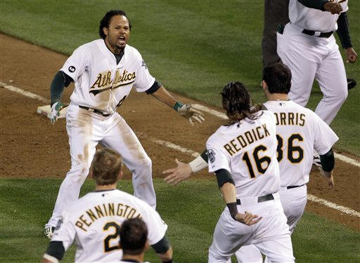 NOTES: A.J. Griffin allowed two runs in 5-plus innings. He was the third Oakland rookie pitcher to start a game this series, the most ever by a team in a single postseason. The A's used just two rookie starting pitchers in 147 postseason games before this year:: Joe Bush in the 1913 World Series and Barry Zito in the 2000 division series. ... Triple Crown winner Miguel Cabrera has not driven in a run in the series. ... Reddick has struck out eight times in the four games, setting an Oakland record for most in a postseason series.