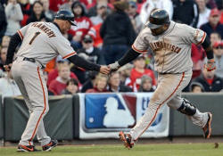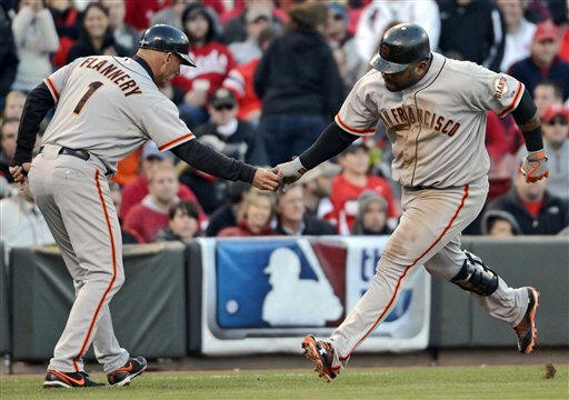 NOTES: The Reds honored RHP Homer Bailey on the field before the game for his no-hitter in Pittsburgh on Sept. 28, presenting him and C Ryan Hanigan with framed photo montages. ... It was Zito's shortest outing since he lasted 2 1-3 innings on Aug. 29 at Houston. The Giants won it 6-4. ... San Francisco has won each of Zito's last 12 starts. ... Leake lasted 4 1-3 innings, giving up six hits and five runs. ... The Giants hit three homers in a game eight times during the regular season.