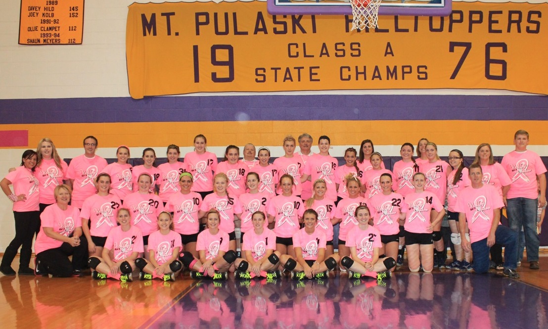 Toppers volleyball team posed with the Sangamon Valley team for a picture