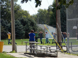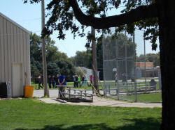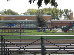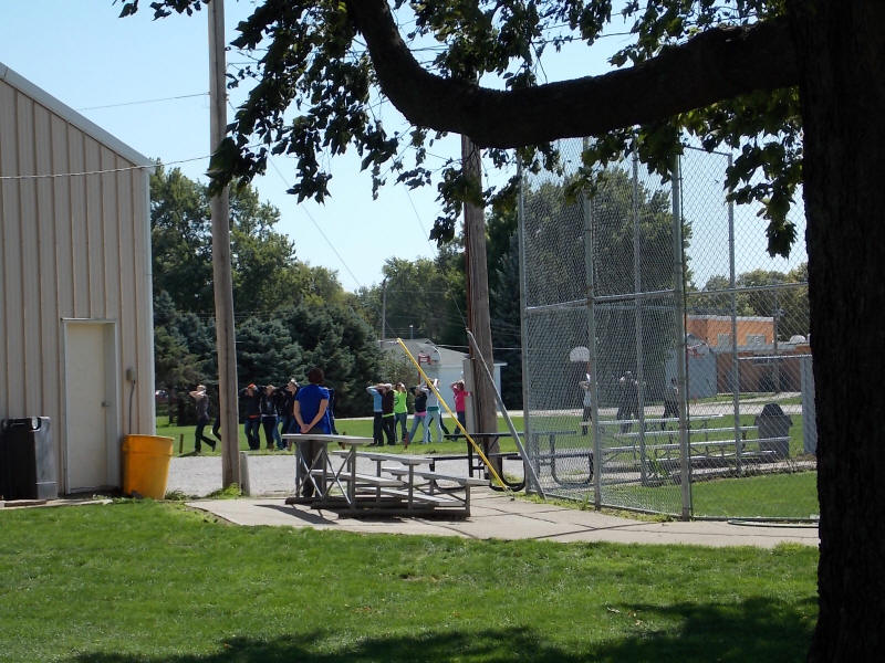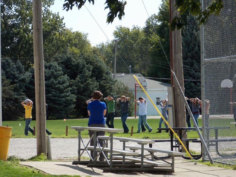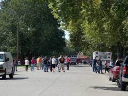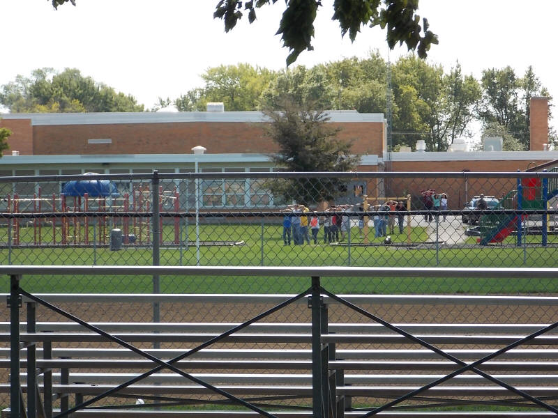 Students were brought out one class at a time, walking from the back of the school to the bus barns with hands over head.