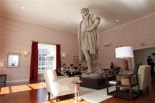 Nishi, who is internationally known for transforming historical monuments by surrounding them with domestic spaces, said the aim of his piece is to put the viewer at eye level with the statue. "Discovering Columbus" is his first public art project in the United States. His other works include "Villa Victoria," a temporary functioning hotel around a statue of Queen Victoria for the 2002 Liverpool Biennial. The nonprofit Public Art Fund, which commissioned Nishi's New York installation, said the organization hasn't heard any objections from other Italian-American groups. The Columbus Citizens Foundation, a 600-member organization that sponsors the annual Columbus Day Parade, has said the artwork will mark the only time people will be able come right up to the majestic statue. The 50,000-member National Italian American Foundation in Washington, D.C., said the installation also will provoke discussion about Christopher Columbus' role in history. The city provided $1 million for the conservation of the monument -- a restoration project that will make use of the scaffolding around the privately-funded installation. The free installation runs through Nov. 18. Visitors can reserve advance passes to "Discovering Columbus" through the Public Art Fund's website at