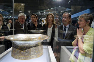 Hollande criticized those who "destroy the values of Islam by resorting to violence and hate." "The best weapons for fighting fanaticism that claims to be coming from Islam are found in Islam itself," he said. "What more beautiful message than that demonstrated here by these works." The Louvre opened a department of Islamic art in 2003, under former President Jacques Chirac, who said he wanted to highlight the contributions of Muslim civilizations on Western culture. Chirac, who vigorously opposed the U.S.-led invasion of Iraq, constantly pushed for the idea of a "dialogue of cultures" to break down the misunderstandings between the West and the Muslim world. But its gallery could initially display only a fraction of the thousands of pieces of art from the Muslim world, so it decided under Chirac on an ambitious expansion. The museum opens to the public Saturday.