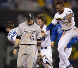 NOTES: White Sox 1B Paul Konerko was held out of the lineup with a sore back. Rios replaced him in the cleanup slot. ... Chicago 3B Kevin Youkilis, who was hitless in 11 at-bats and batting .133 in the past 17 games, was dropped from the second spot to the sixth slot. ... The White Sox continue their trip with a weekend series at Los Angeles. RHP Jake Peavy will start Friday night against the Angels. He is 0-2 with a 5.04 ERA in four career starts vs. the Angels. ... RHP Luis Mendoza, who had strep throat and was scratched from a Wednesday start, will start Friday for the Royals against Cleveland. ... Perez has picked off a franchise-record eight in 104 career games. Darrell Porter held the club record with seven in 492 Royals games from 1977-80.