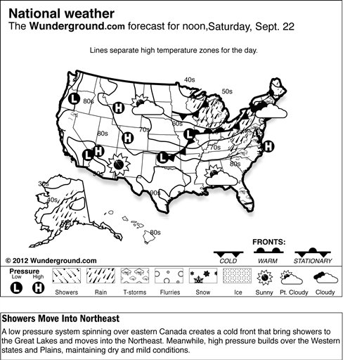 Temperatures in the Lower 48 states ranged Thursday from a morning low of 24 degrees at West Yellowstone, Mont., to a high of 104 degrees at El Centro, Calif.