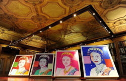 century and used similar techniques in portraits of Marilyn Monroe, Jackie Kennedy and Elvis Presley. He created these images of the queen in 1985 as part of a portfolio of screen prints called "Reigning Queens." The exhibit will be open to people who visit Windsor Castle, which is roughly 20 miles west of London. It will run until June 2013.