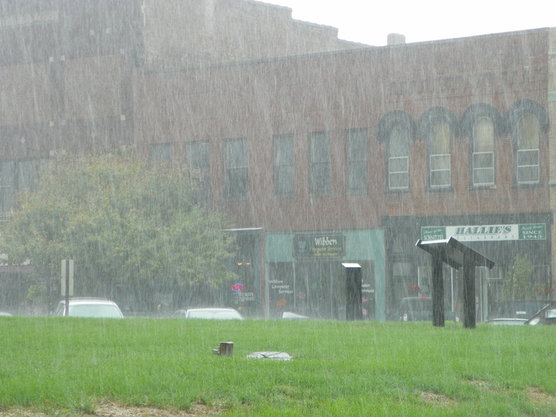 2:12 p.m., the skies opened up over downtown Lincoln and the rain