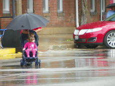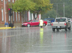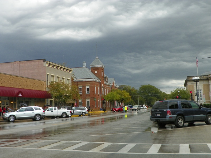 outside of few donning umbrellas, not many seemed to notice. The awnings on the businesses on the north side of the square