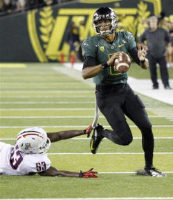 Oregon State went into UCLA and knocked off the Bruins 27-20 behind Sean Mannion's career-high 379 yards and two touchdowns. The loss dropped UCLA out of the rankings, somewhat surprisingly. The Bruins offense is in good hands with redshirt freshman quarterback Brett Hundley. Their defense needs work.