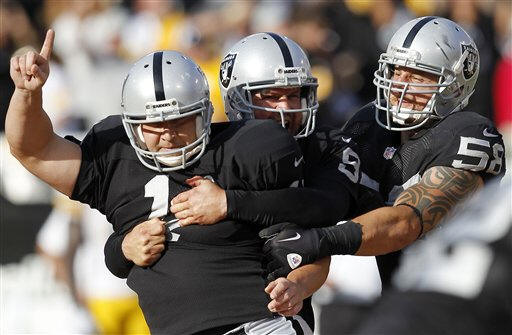 NOTES: Myers left the game with a concussion on the final drive. ... Hall of Famer Marcus Allen lit the torch honoring late owner Al Davis in a sign that his long-running feud with the organization has ended. ... Miller has four TD catches in three games.