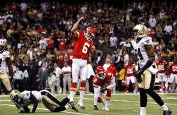 NOTES: Along with McCluster, the Chiefs lost starting C Rodney Hudson to an apparent right knee injury and RB Peyton Hillis to an ankle injury in the third quarter. ... Saints LB David Hawthorne left with a hamstring injury in the first half and did not return. ... Brees now has TD passes in 46 straight regular season games, one behind Johnny Unitas' record.