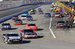 The biggest threat for Hamlin on Sunday was a plastic bag that was sucked onto the front of his car, blocking part of the air intake, with about one-third of the race to go. Busch, who had blown a cylinder and is not a part of the Chase, slowed down to allow his teammate to come up behind him.