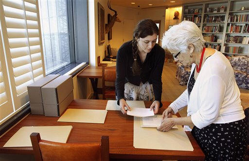 "His documents were kept in so many places over time. There are so many things that have happened to them," Wrynn said. "The deterioration just continues, so if you don't become proactive at some point, you have the potential to lose information." Among letters needing repair are some from the writer's family, childhood cronies, and war and fishing buddies. Besides two of Bergman's letters, correspondence from Hollywood stars Marlene Dietrich and Gary Cooper will undergo work, as well. Also slated for restoration are letters from Max Perkins, Hemingway's editor at Scribner's, and correspondence from writers Gertrude Stein, Walter Winchell and Martha Gellhorn, the journalist who became the author's third wife. World War I-era dispatches from Agnes von Kurowsky, the Red Cross nurse upon whom Hemingway based his Catherine Barkley character in "A Farewell to Arms," also need saving from extensive mold, water and corrosive ink damage. Handling the letters that belonged to the Nobel- and Pulitzer Prize-winning writer while boxing them for transport to the lab is a task library officials undertake with a focus and reverence worthy of holy relics. "Your heart does kind of stop," Wrynn said in the midst of a recent boxing operation. Among the next batch of letters that will head to the lab this fall will be four Western Union telegrams F. Scott Fitzgerald sent Hemingway from 1934 to 1937. In two of them, the writer talks about plans to visit his friend in Key West. "Could make three day stay .... not up to anything strenuous probably result of teatotaling since January," he messaged Hemingway from Baltimore in May 1935. But Hemingway was busy -- probably off chasing marlin. A note on the telegram, believed to be handwritten by Hemingway's second wife, Pauline Pfeiffer, showed Fitzgerald's suggestion was met with a return wire expressing regrets. "Ernest in Bimini, forwarding your message, so sorry Love P," it said.