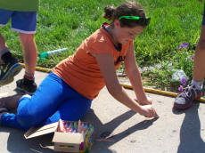 sidewalk art, to the library book sale, the Up in Smoke and Backyard