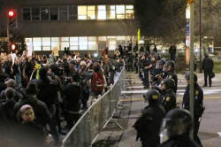 fired tear gas and pepper spray to disperse crowds of demonstrators