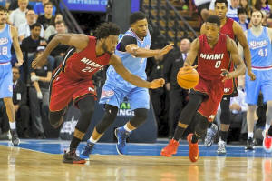Miami (44-31) stayed tied with the Charlotte Hornets (44-31) for the