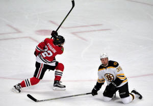 Boston Bruins on Sunday afternoon. Chicago (46-26-7) jumped to a 6-0