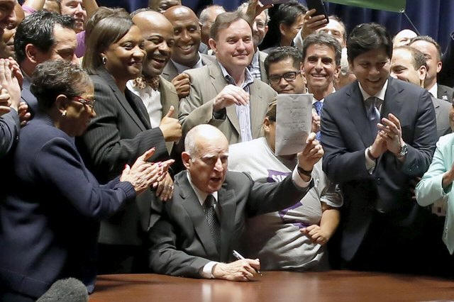 wage from $10 to $15 an hour by the year 2023, making the nation's