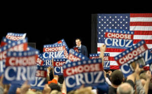 candidate Ted Cruz's support among Republicans is about even at a