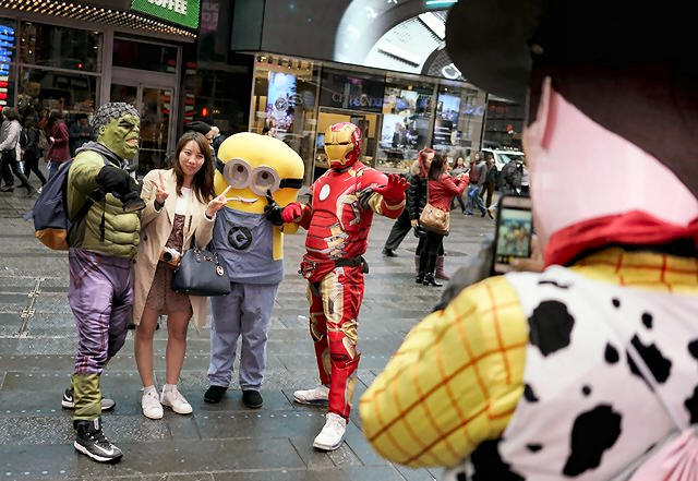 characters who pose for pictures with tourists in return for tips in