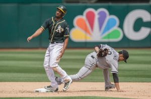 In the first inning, Oakland's Josh Reddick reached on a throwing