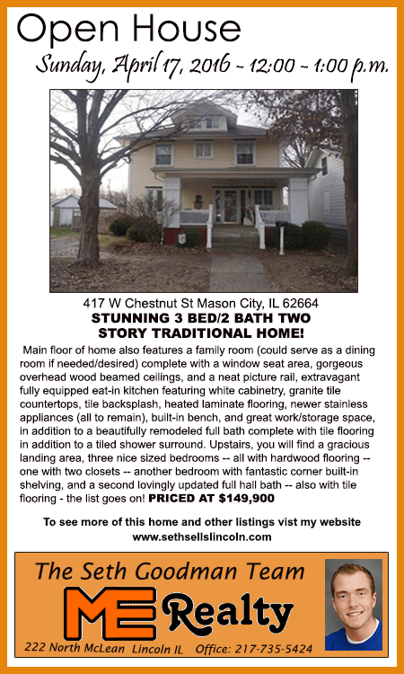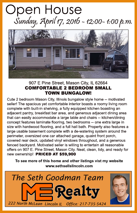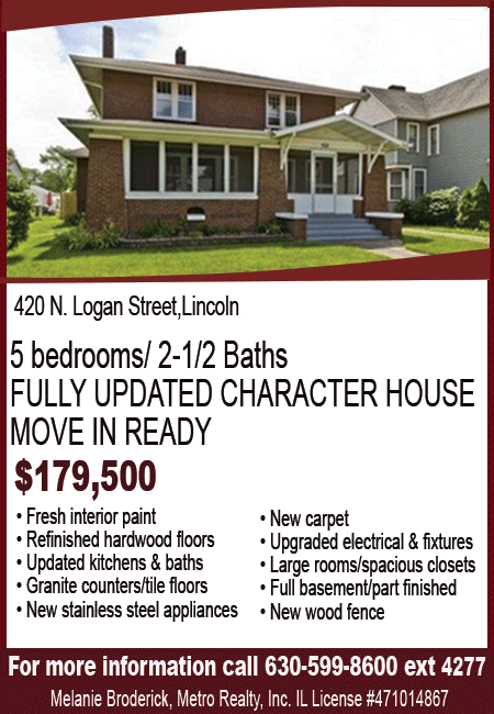 All real estate advertised in the Lincoln Daily News is subject to the Fair Housing Act for 1968 which makes it illegal to advertised "any preference, limitation, or discrimination based on race, color, religion, sex or national origin, or intention to make special preference, limitations, or discrimination."