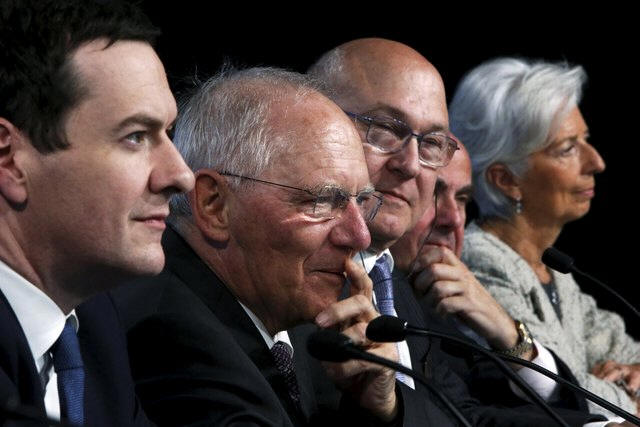 Minister Wolfgang Schaeuble, France's Finance Minister Michel