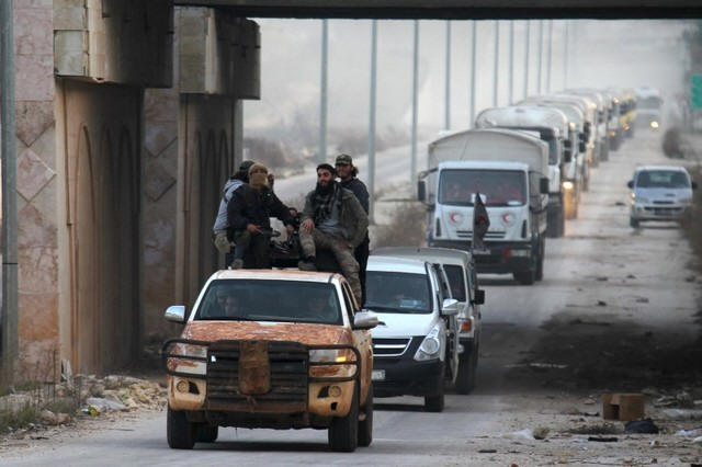blockaded by rebels are al-Foua and Kefraya in Idlib province,