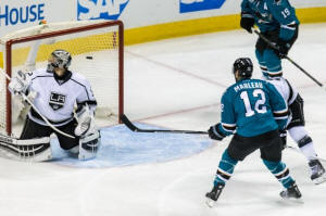 from Joel Ward just inside the near post to beat Kings goalie