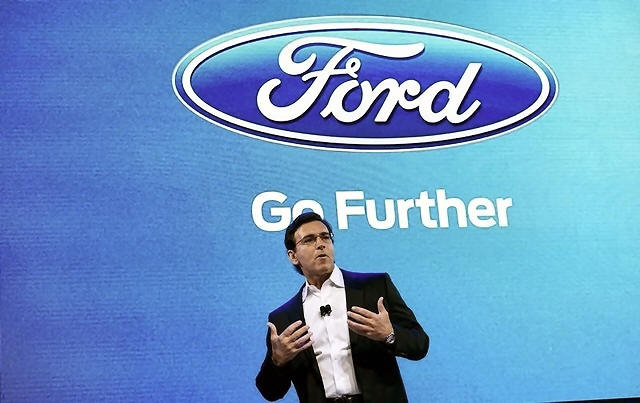 Ford Motor Co CEO Mark Fields speaks at the Ford press