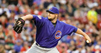 Cubs starting pitcher Jon Lester throws a pitch against the