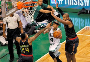 loose ball at the buzzer to keep Boston ahead by one entering the