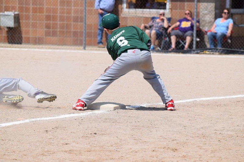Mammen of the Lincoln Heat 10U puts on the tag at third
