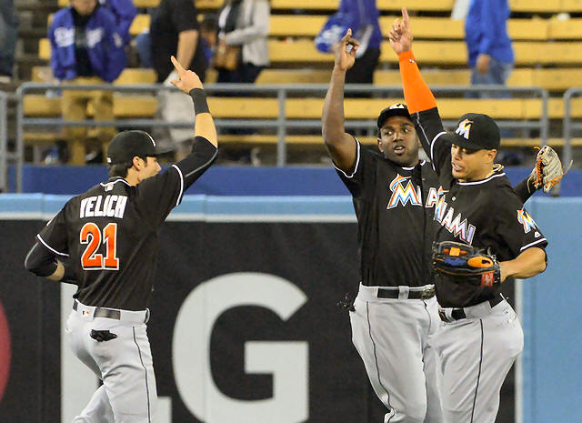 Miguel Rojas before Christian Yelich drove in Dee Gordon to cut the