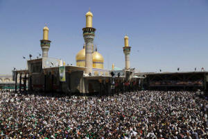 Muslim pilgrims in a southeastern suburb of Baghdad, Iraqi police