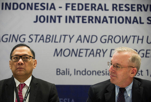 Central Bank Governor Agus Martowardojo (L) and the President of