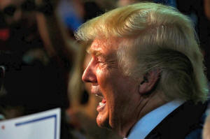 Republican presidential nominee Donald Trump works the ropeline at