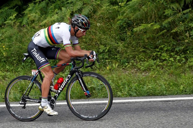 Tinkoff team rider Peter Sagan of Slovakia rides during the race.