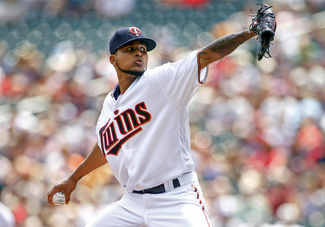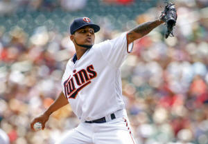 Twins starting pitcher Ervin Santana (54) throws to the Chicago