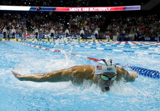 Michael Phelps during the men's 100m butterfly finals in the U.S.