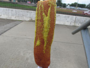 The nice young woman behind the counter hands me my corn dog and I leave, again to find a quiet place to eat. Eating a corn dog is not like eating a steak sandwich. You try to savor the steak and take it slow, but a corn dog is best eaten when wolfed down before the mustard dries. This isn’t possible, even for the best eaters, but I try anyway. Even with the dried mustard at the end, my trip to this stand was a pleasant one, and my corn dog was quite tasty. My only regret is that I didn’t follow the woman in front of me and get a drink with it. Oh well. Lessons for later.